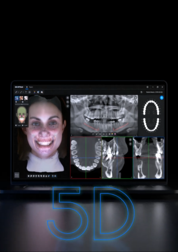 Le logiciel Ray 5D combine l’imagerie CBCT, les scans faciaux et l’intelligence artificielle afin de créer un modèle anatomique patient en 3D et 5D, pour des diagnostics plus rapides, des plans de traitement mieux argumentés et un taux de réussite clinique amélioré.