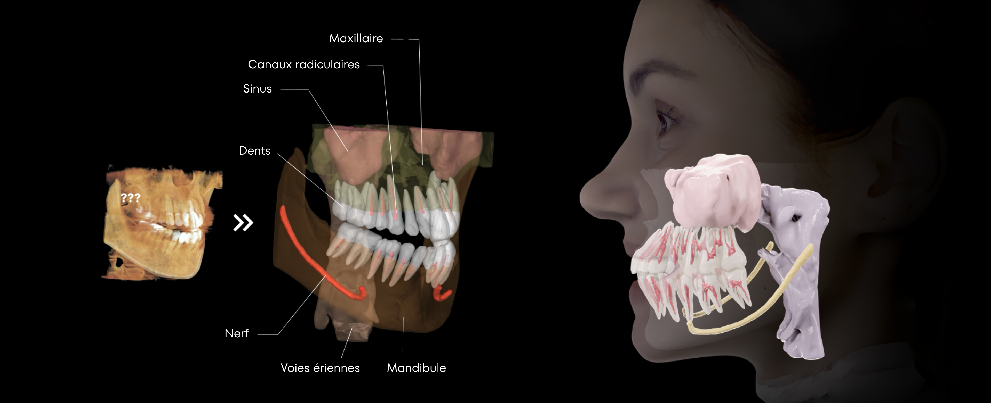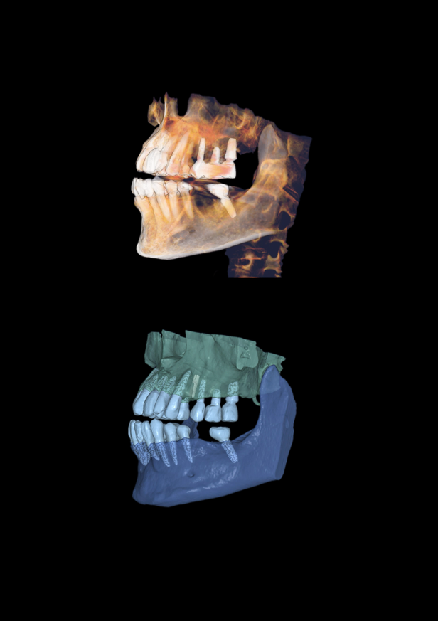 Segmentation automatique de + de95 % des structures anatomiques (nerfs, voies aériennes, dents) en moins de 2 minutes.
