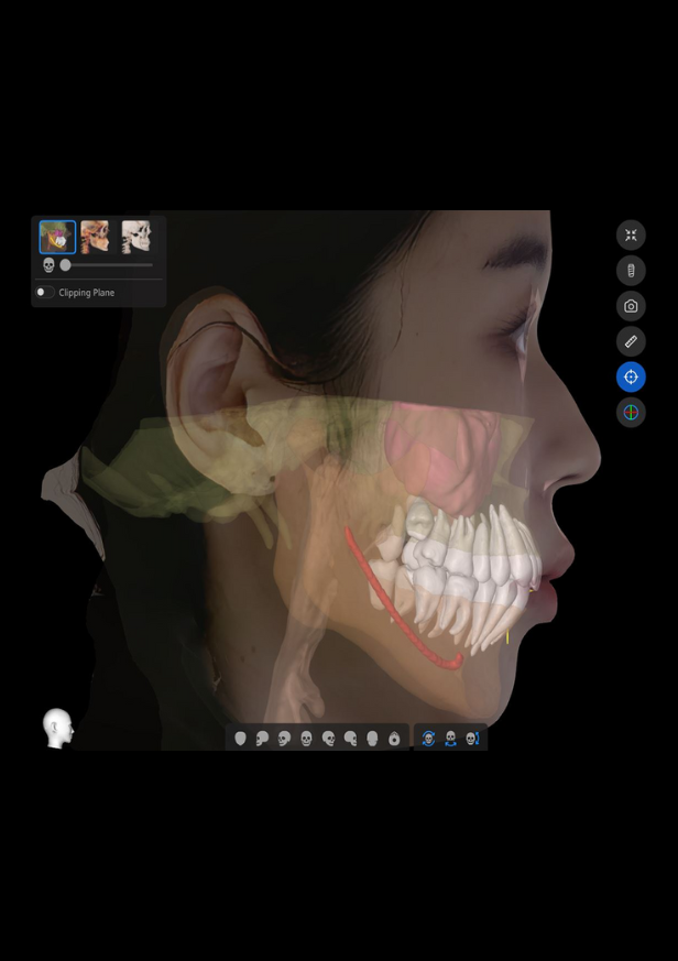 En temps réel : combine CBCT, scan facial et scan occlusal pour simuler extraction, mouvement dentaire ou pose d’implant.