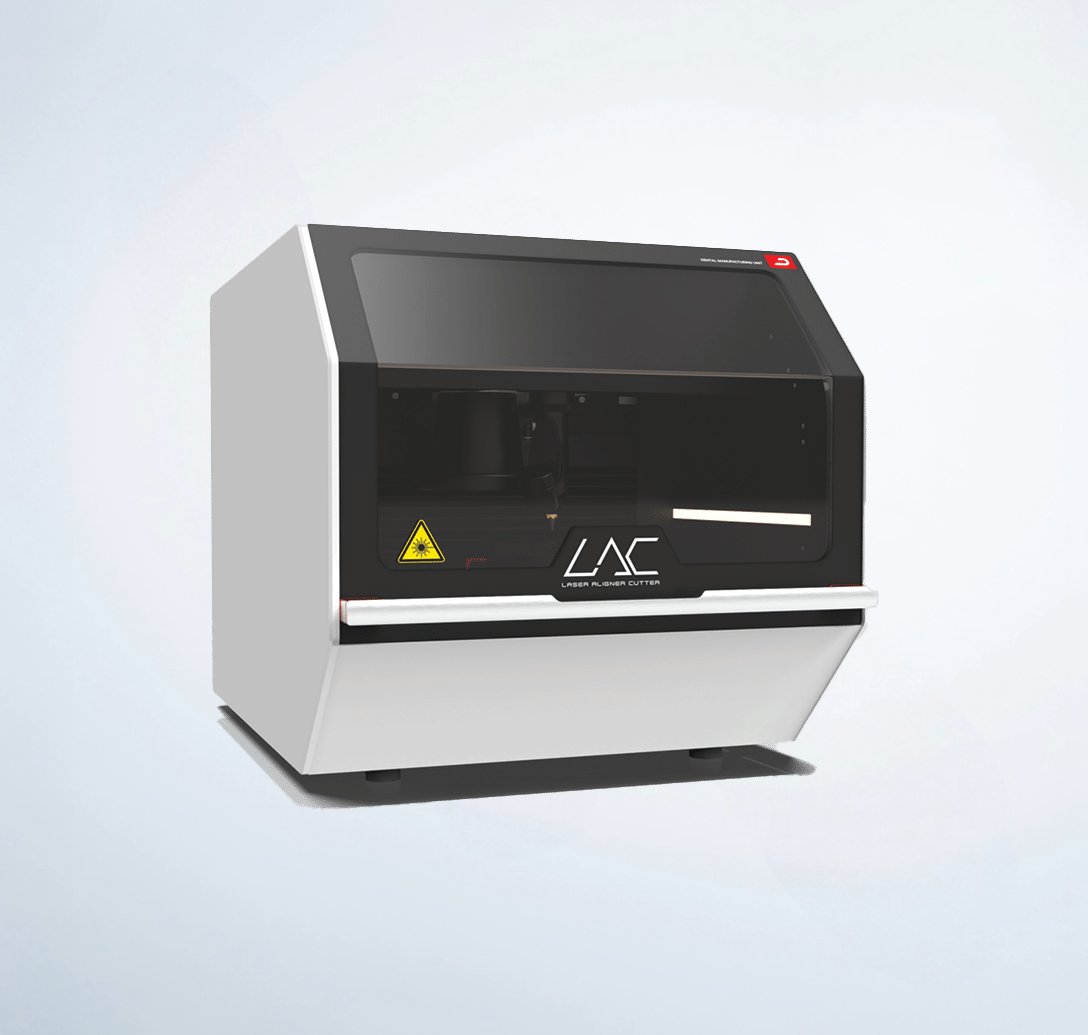 La LAC réinvente la production d’aligneurs en proposant une découpe laser entièrement automatique après thermoformage 3D. Compatible avec les fichiers STL, PTS/DXF ou CSV, elle découpe chaque aligneur en 60 à 90 secondes, avec une précision élevée et sans besoin de finition manuelle.