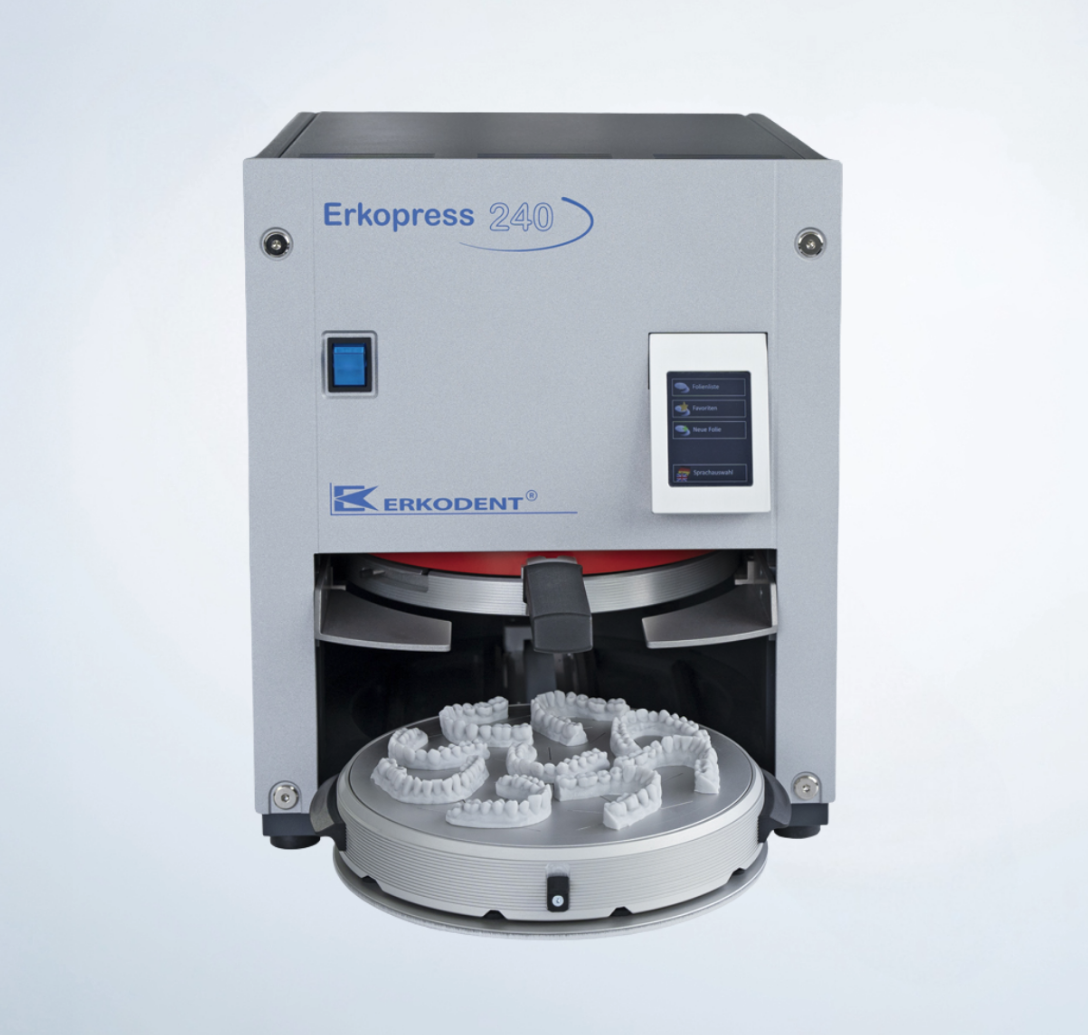 Référence pour laboratoires multi-matériaux, la Erkopress 240 est idéale pour réaliser splints, gouttières de bruxisme et protections.
